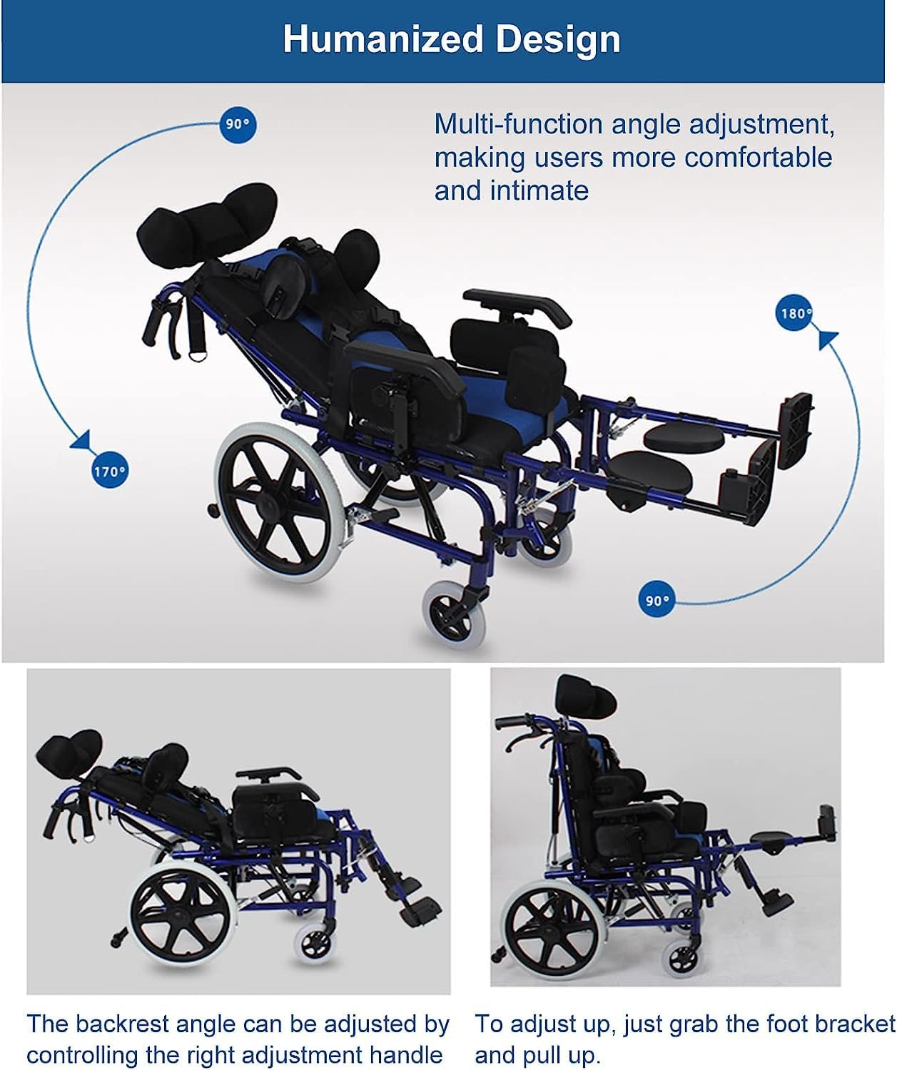 تغییر زاویه پشتی ویلچر در درجات مختلف از دیگر ویژگیهای محصول است.پایه های این ویلچر سی پی باز شو و متحرک قابل تنظیم در زوایای مختلف است.این ویلچر دارای ترمز دستی فشاری بوده که باعث کنترل راحتتر ویلچر می‌گردد.این محصول دارای دو ترمز فشاری روی دو دستگیره عقب و یک ترمز دستی برای کنترل سریع و راحت ویلچر است.دسته های ویلچر سی پی  از نوع باز شو و متحرک با قابلیت تنظیم در ارتفاعات مختلف است.ویلچر فلج مغزی جی تی اس در سه سایز 38 ،40و44 تولید می‌شود.