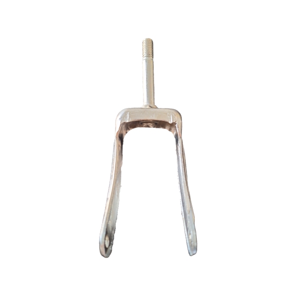 دوشاخ فلزی چرخ جلو ویلچر /فاصله دهانه دوشاخ: 60 میلیمتر/ارتفاع دوشاخ: 210 میلیمتر/ارتفاع پیچ بالای دوشاخ: 70 میلیمتر/قطر سوراخ پایین دوشاخ: 8 میلیمتر/وزن دوشاخ: 334 گرم